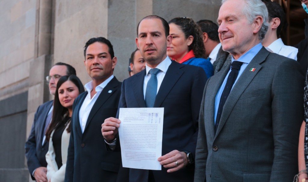 “Hemos presentado esta acción de inconstitucionalidad porque en Acción Nacional y los partidos de la coalición Va por México estamos a favor de la defensa a nuestras instituciones democráticas que tantos años nos ha costado construir y en contra del autoritarismo del presidente y funcionarios de su partido que con sus intervenciones ilegales realizan actos simulados de comunicación”.